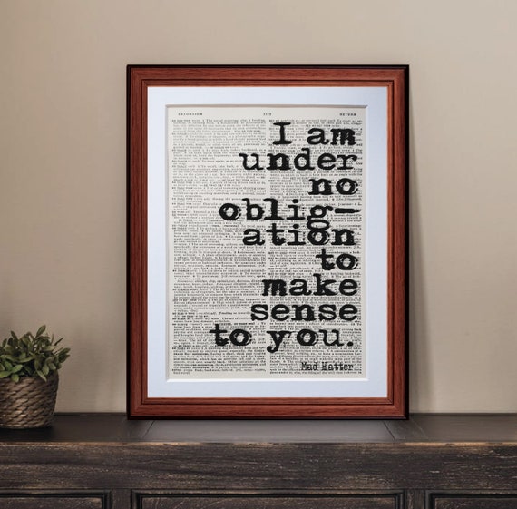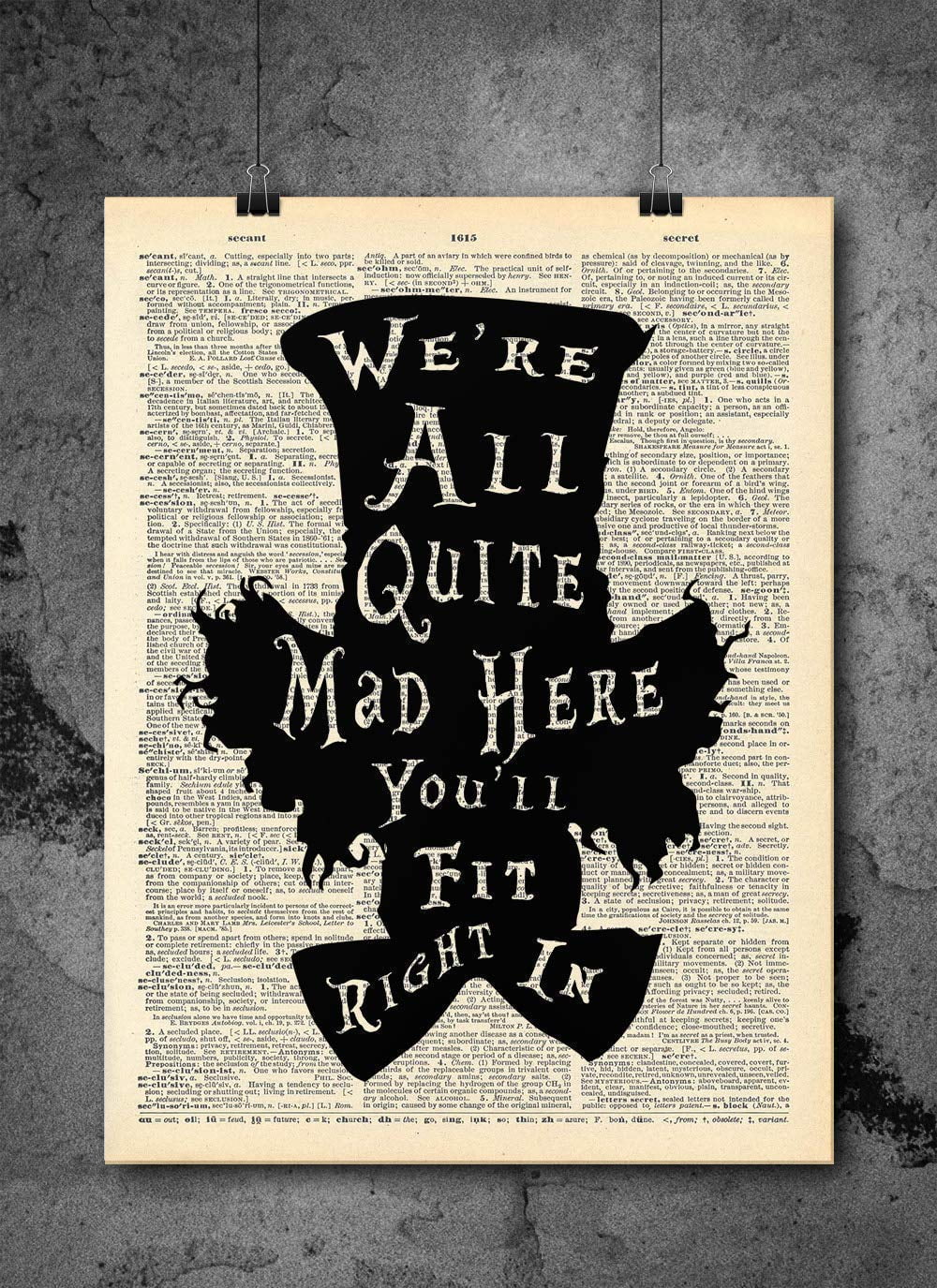 Alice In Wonderland Mad Hatter Quote Dictionary Page Art Print Etsy